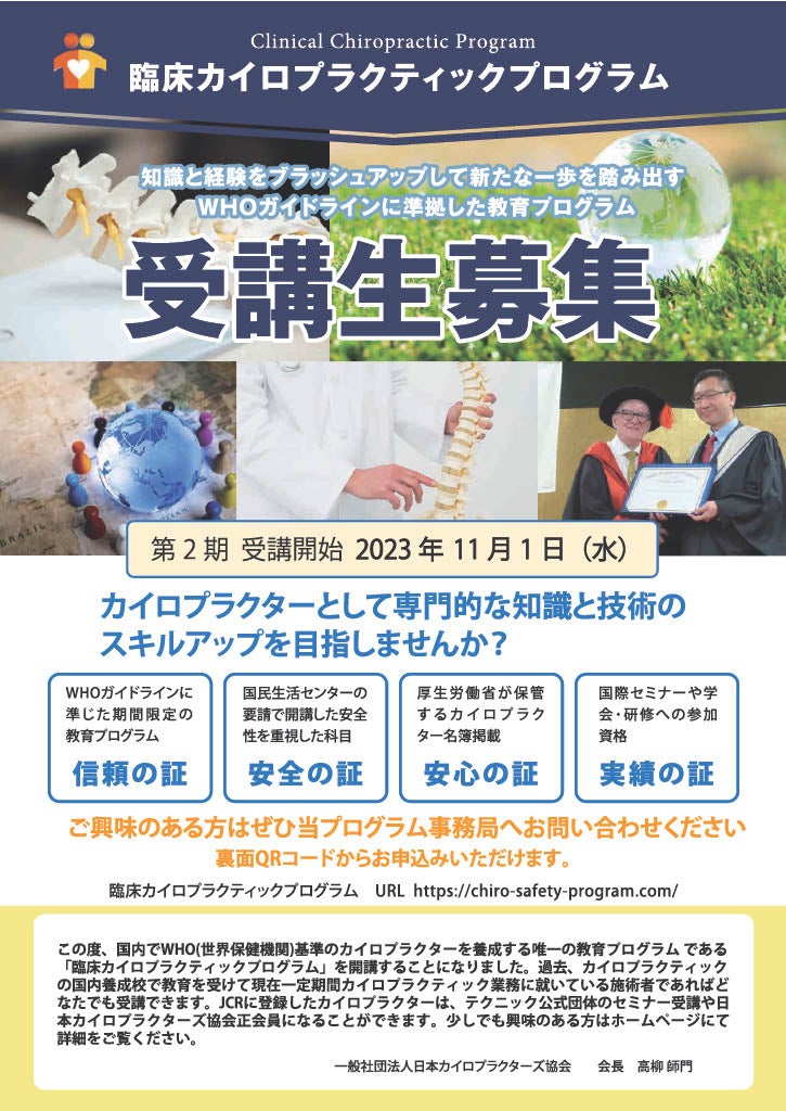 《第2期募集チラシ》https://chiro-safety-program.com/wp-content/uploads/2023/07/ccp_brochure.pdf