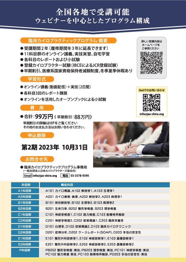 臨床カイロプラクティックプログラム 第2期募集のお知らせ
