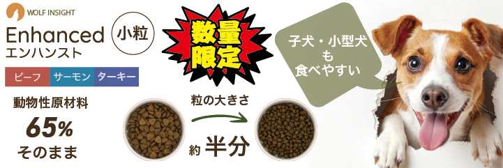 株式会社Pontely(本社:東京都、代表取締役:野上 隆徳)が展開するペットフードブランド「ウルフインサイト」は、このたび「エンハンスト」シリーズに新たに“小粒タイプ”を追加いたします。本製品は、従来品の約半分のサイズとなっており、特に子犬や小型犬にとって噛みやすく、消化しやすい形状に見直しました。さらに、小粒化にあわせて配合しているスーパーフードも見直し、成長期や小型犬の健康に配慮したレシピへと最適化しました。