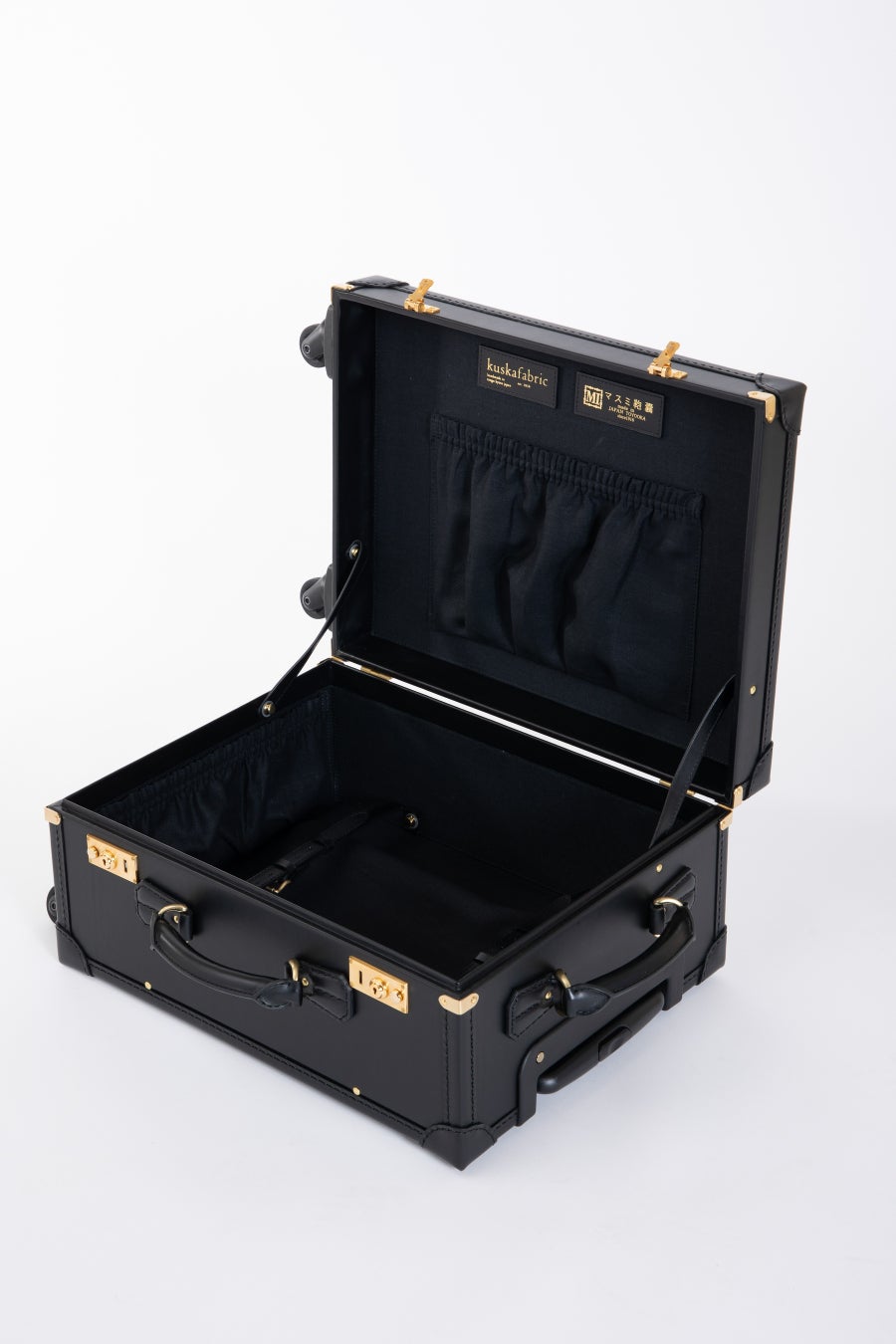 kuska fabricのレザーテキスタイルを豊岡鞄のマスミ鞄嚢にて製作したキャリーバック