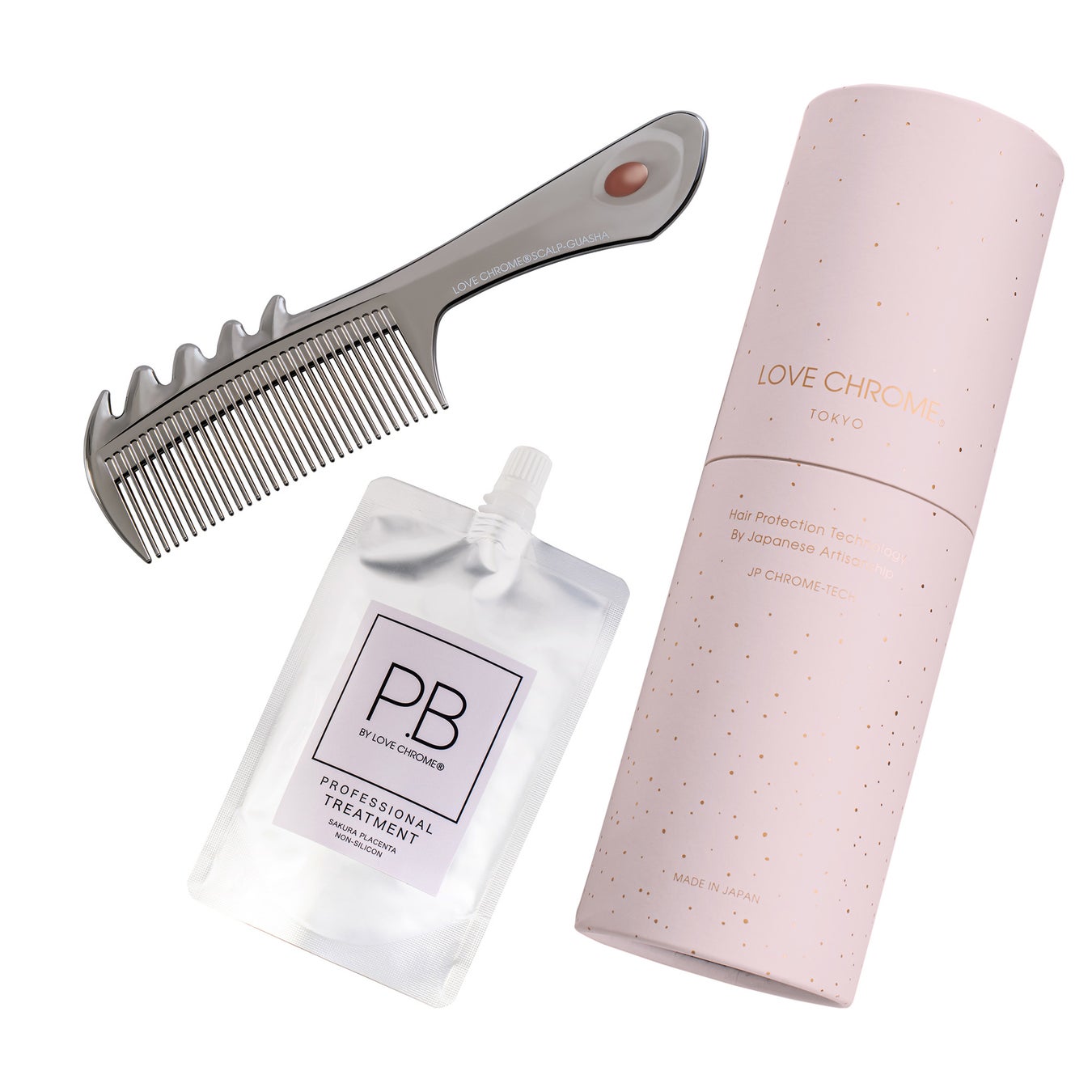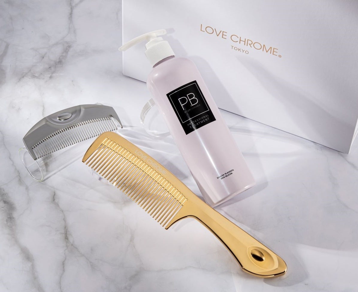 純金コームで話題の「ラブクロム」から、サロンケアの浸透施術「コーム&トリートメント ケア」を実現する、専用トリートメントセットが発売