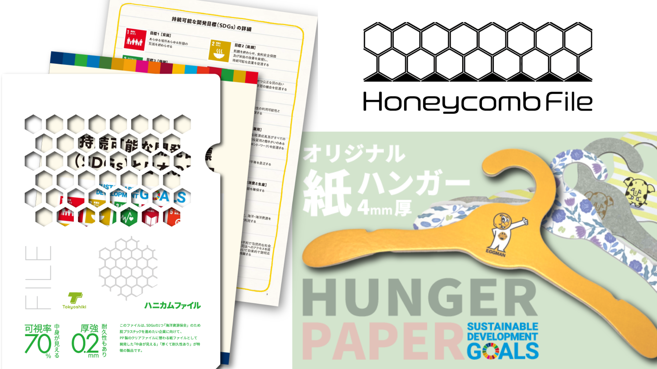 特殊構造で強度と中身の見える化を両立させた紙製ファイル「ハニカムファイル」、強度と実用性、販促効果を追求した紙製ハンガー「カミハンガー」をリリース