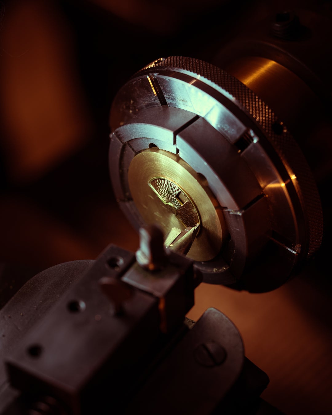 直線用と曲線用の2種類のギョーシェ機械を使い分けていますが、これらの機械の使い方については200年以上もマニュアルが存在せず、職人たちの長年の経験と知識で繊細なギョーシェ技法を継承してきました。この技術を操る熟練の職人は世界でもごくわずかしかおらず、伝統は彼らの情熱によって受け継がれています。この伝統技術が絶えないよう、時計作りを続けて行くことがクロノスイスのミッションでもあります。