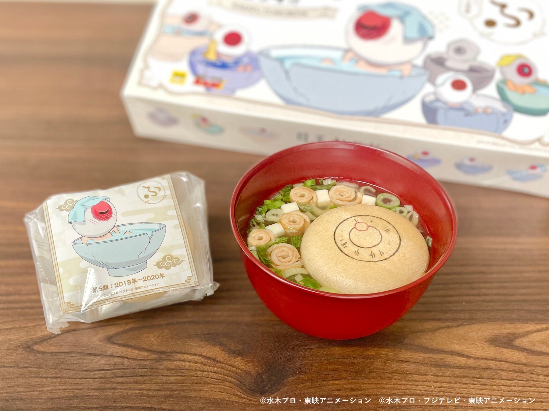 お湯を注ぐともなかの中からうずまき麩があふれ、ゲゲゲの鬼太郎の世界観に合わせた一品。伝統の加賀みそを使ったお味噌汁は、香り高くまろやかな味わいです。