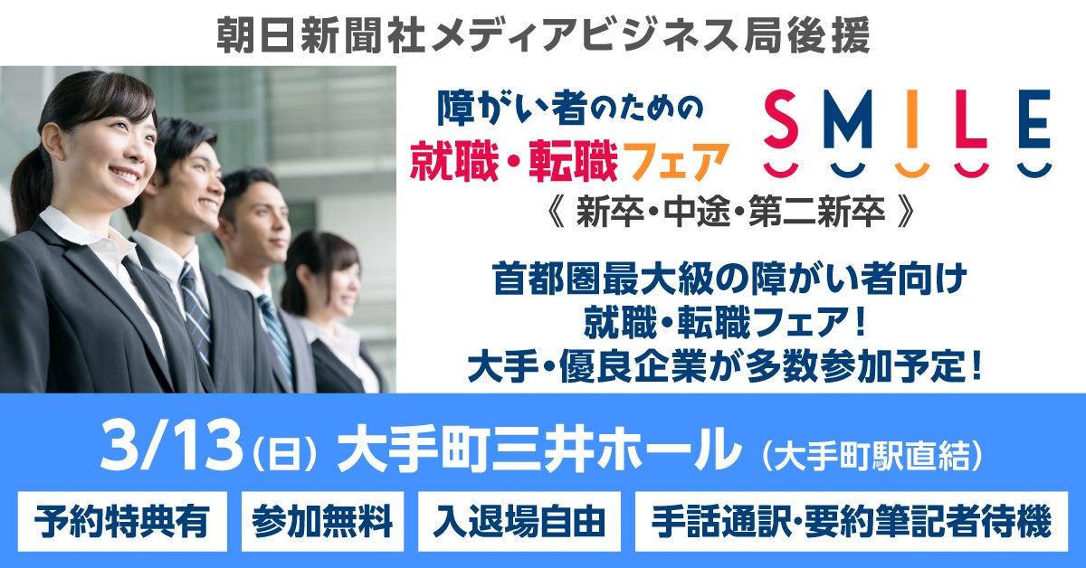 首都圏最大級の障がい者向け就職・転職フェア「SMILE」が3/13(日)東京・大手町にて開催!