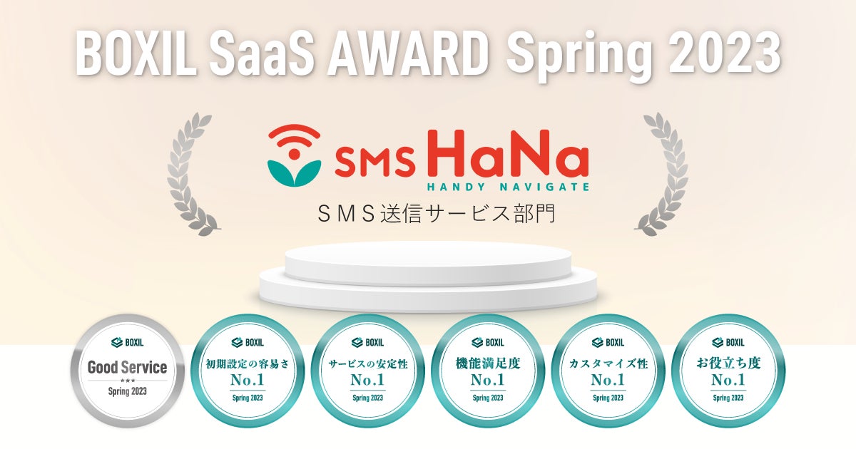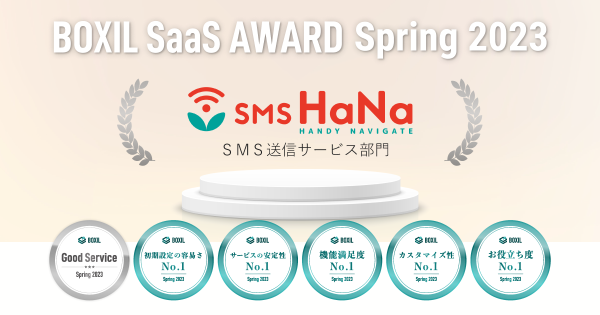 SMS HaNa「BOXIL SaaS AWARD 2023」と「BOXIL SaaS AWARD Spring 2023」のSMS送信サービス部門で同時受賞