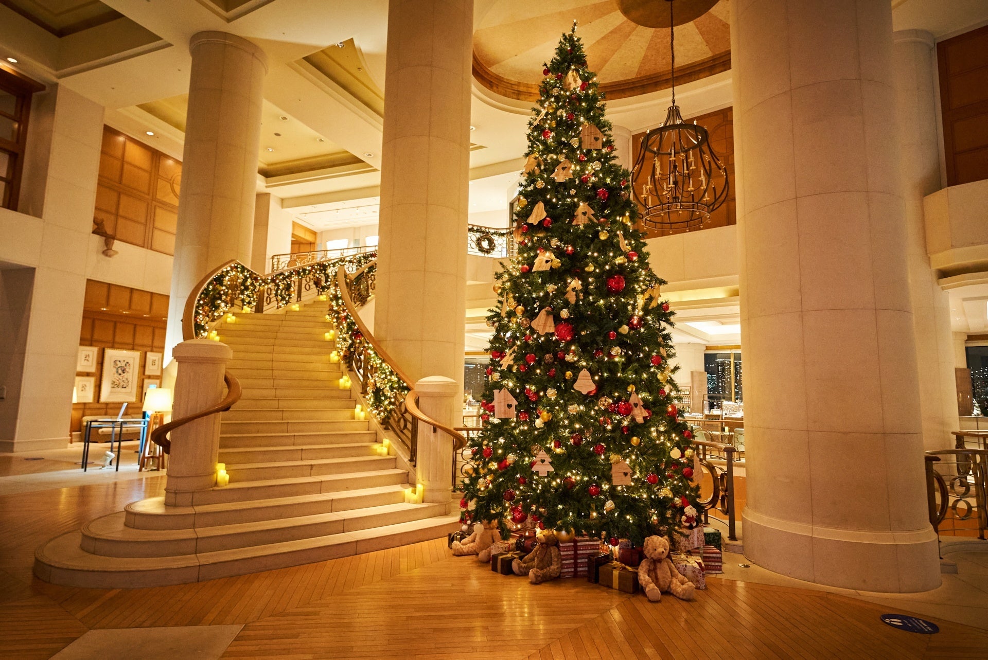 ロビーには、カラフルなオーナメントを飾った6mの大きなクリスマスツリー、大階段には、心温まるキャンドルを随所に灯します。