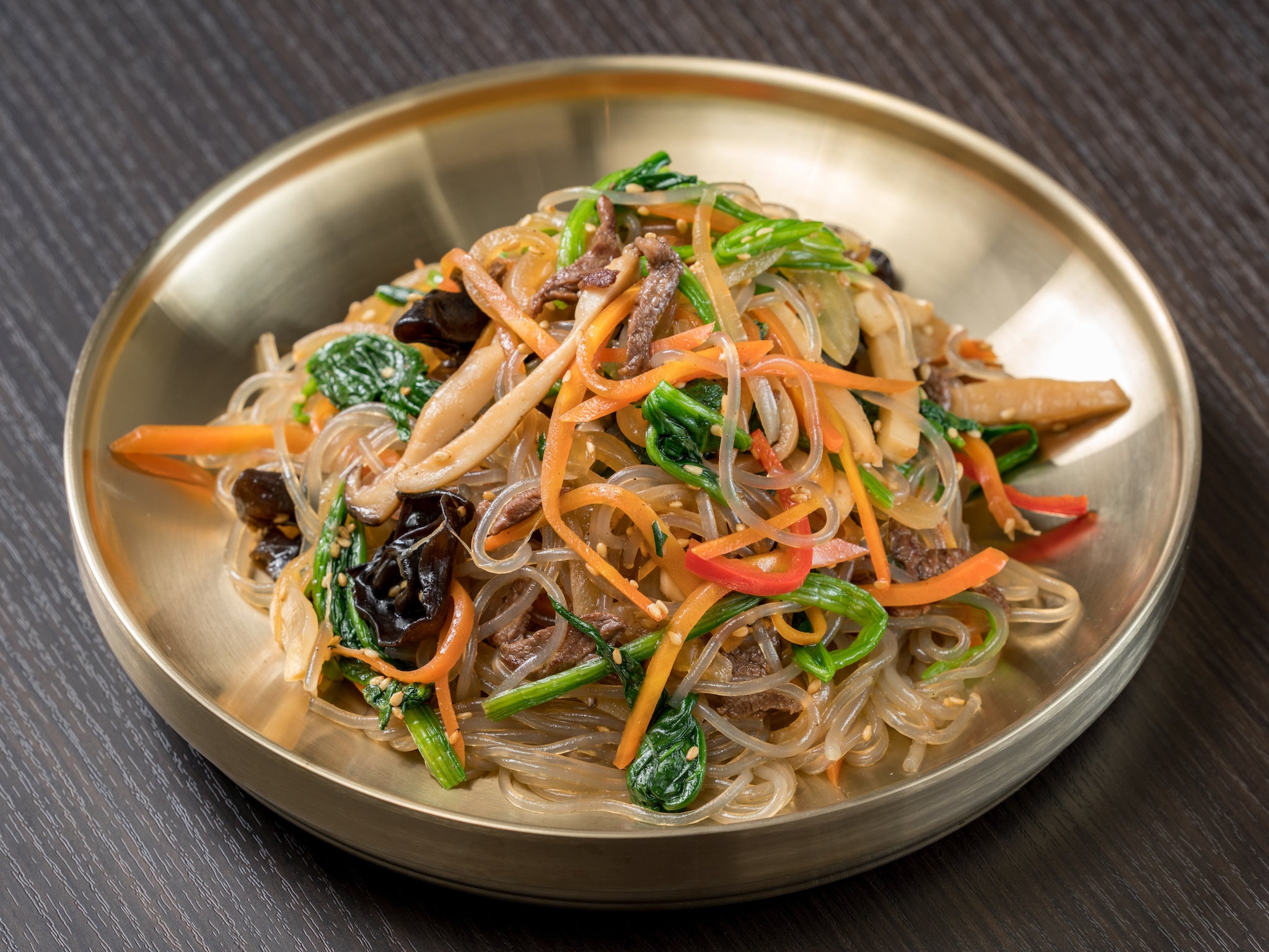 韓国春雨を茹で、野菜や肉を炒めたものを当店特製のソースで和えた御馳走感のあるチャプチェ。見た目が鮮やかであることから、韓国のお祝いの席では振舞われる料理の一つです。