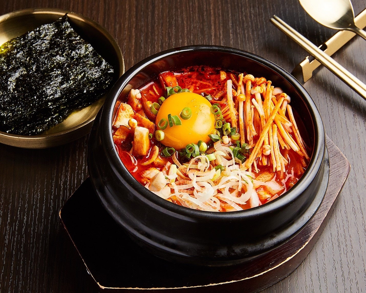 独自ブレンドで仕上げた熱々スパイシースープと絹のようにやわらかいスンドゥブ(豆腐)はぜひお召あがりいただきたい一品です。米国の「ニューヨークタイムズ」が、“冬に食べたい最高の料理”と絶賛して話題になったことがあり、世界が認める鍋料理です。