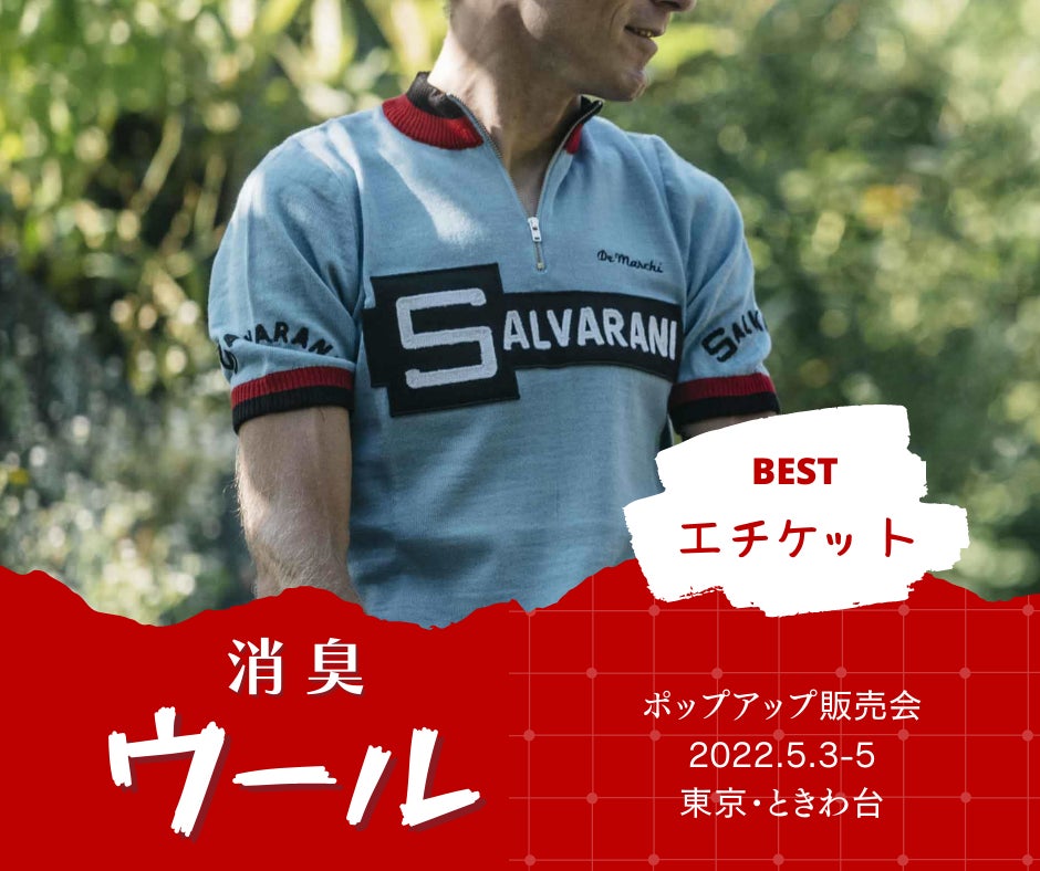 そして、ウールといえば、持久系スポーツの中で世界で最も過酷とされるツール・ド・フランスに代表される自転車ロードレースで長年使用されてきたサイクルウェアが知られています。当社では、この自転車ロードレース界で鍛えられた消臭機能のあるスポーツウェアを100点以上ラインナップするポップアップ販売会を「天祖神社 杜のまちや」(〒174-0072 東京都板橋区南常盤台2-4-1)で開催します。