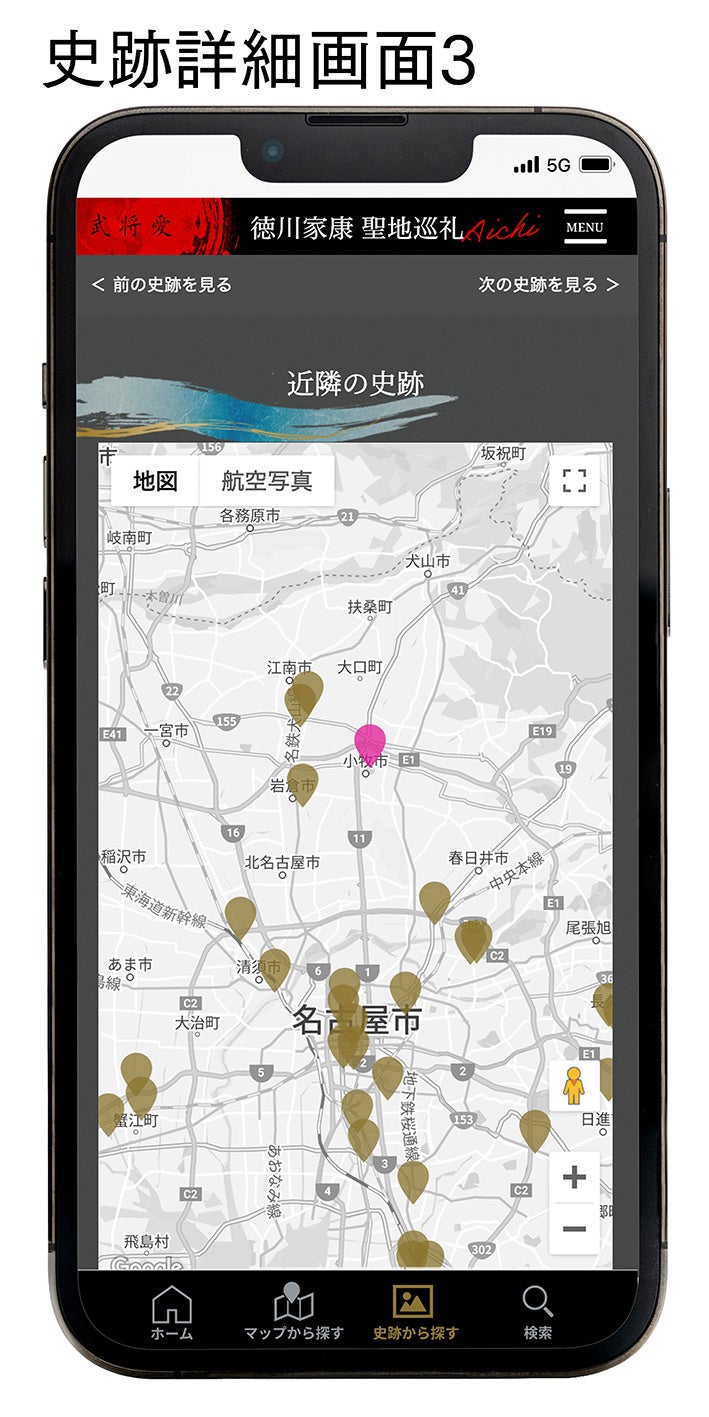 「徳川家康聖地巡礼AICHI」では、5つのアプローチで聖地(史跡)を探すことができます。