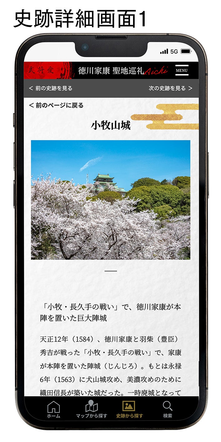 徳川家康の人生を6つの時代に分け、さらに約50の出来事に分類。徳川家康の人生をなぞりながら関連した史跡を知ることができ、さらに史跡詳細情報まで見ることができます。