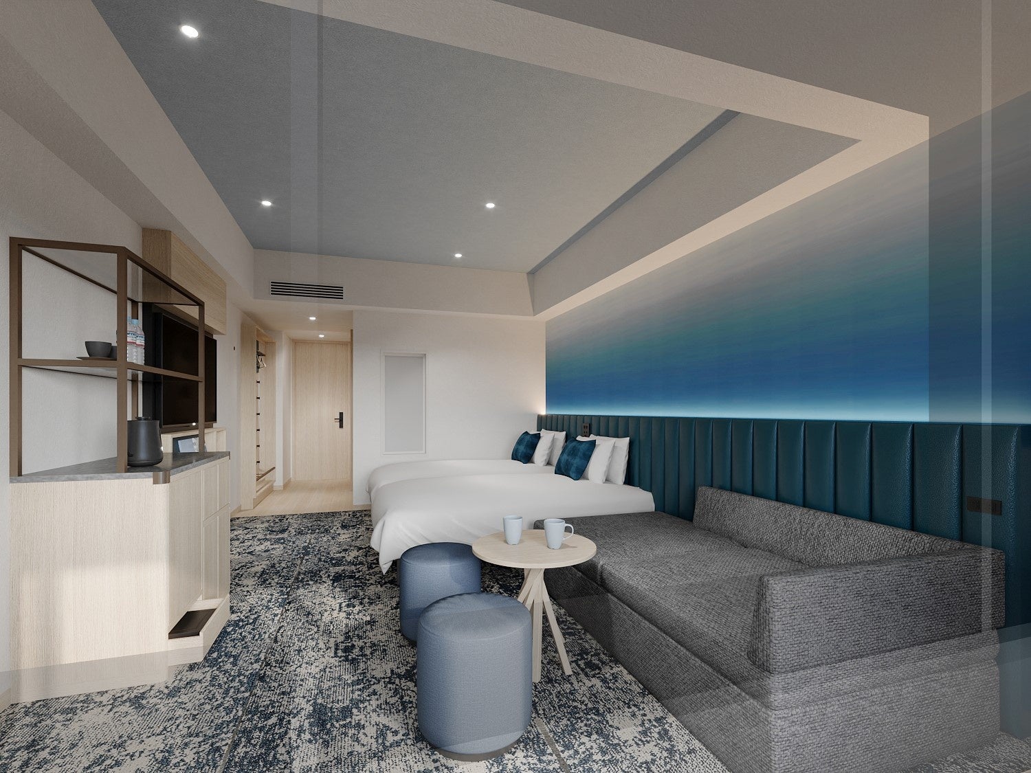 今回のリニューアルには、2名~4名でご利用になれる客室を中心に、バルコニー付きの客室や6名で宿泊できる客室が含まれます。