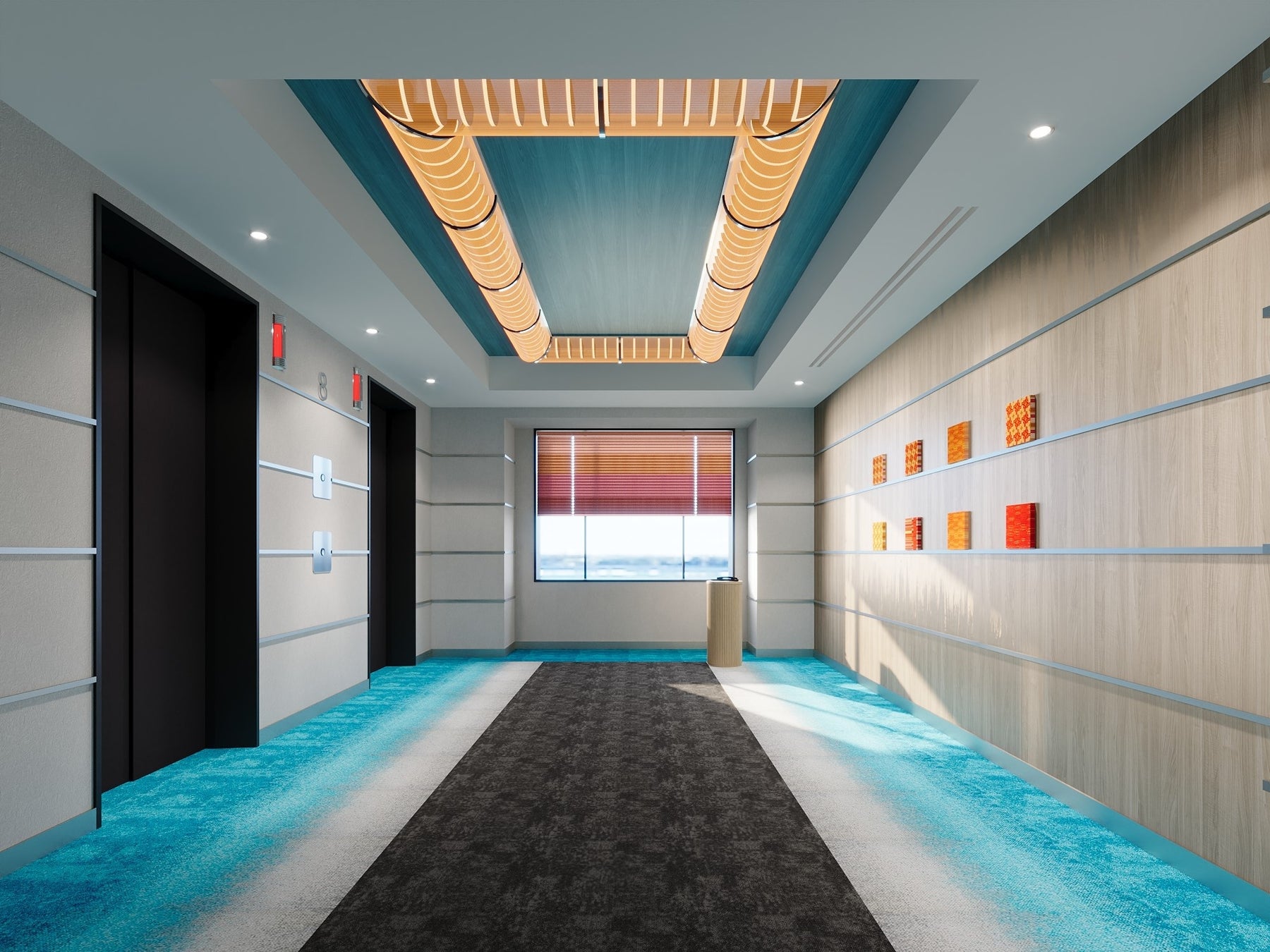 リゾートのビーチストリートのような照明やサインをアクセントとし、エレベーターホールから廊下もリニューアルいたします。