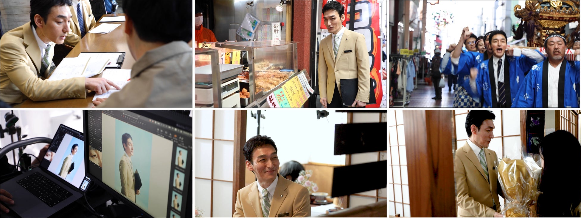 商店街の焼き鳥屋さんをおススメしたり、エキストラと「今月はウナギがいいですよ♪」と会話したり、台本には無い草彅さんのアドリブが周りのスタッフをも笑顔にさせ、撮影は終始リラックスしたムードで進められました。