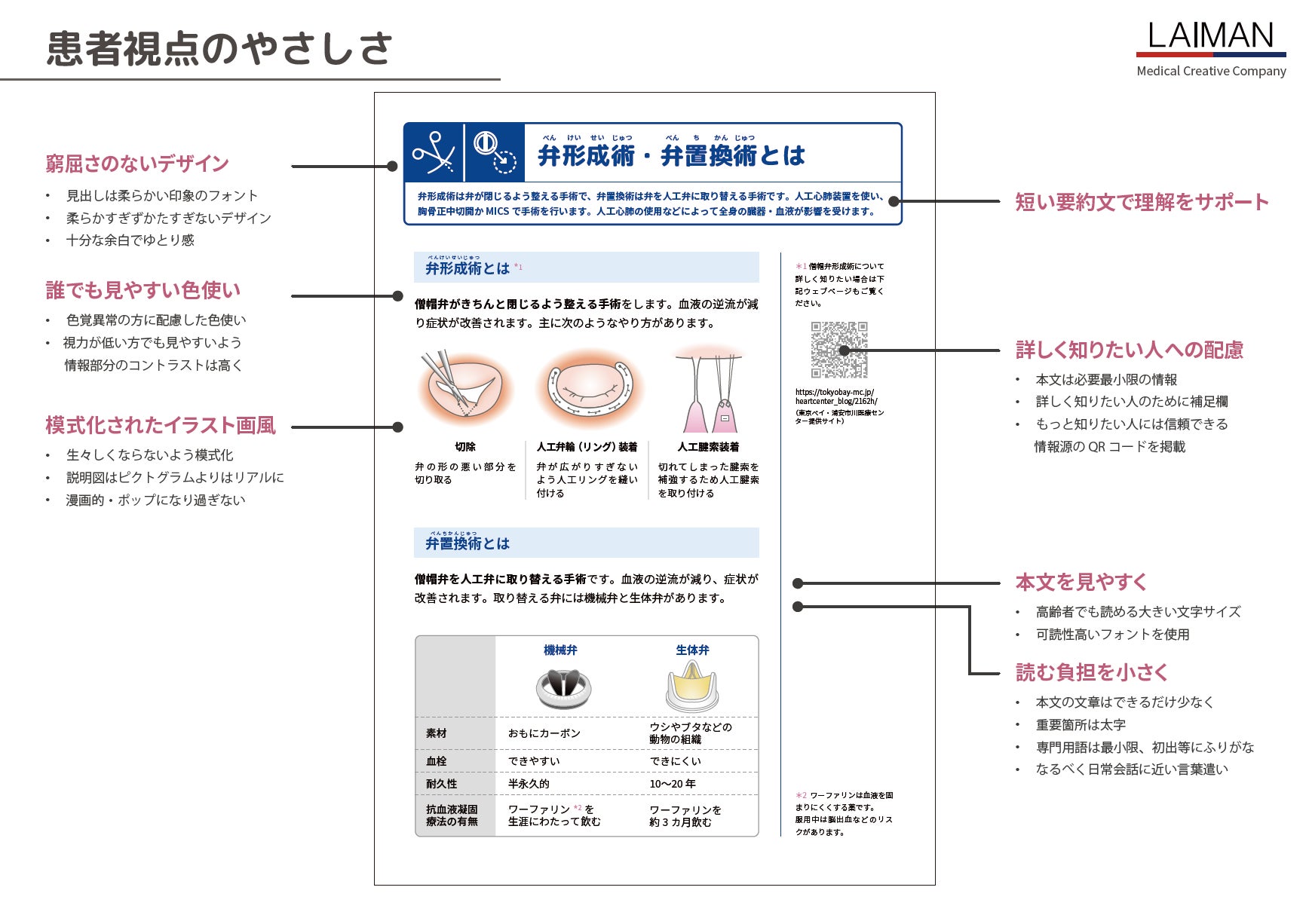 田端 実 医師(順天堂大学 心臓血管外科 主任教授・一般社団法人ハートアライアンス代表理事)と、株式会社レーマンが患者説明資料を共同研究開発。患者視点のわかりやすさと医療者視点のわかりやすさの両立。