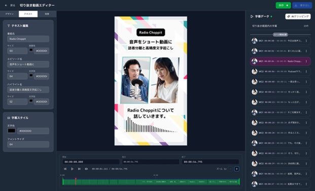 放送局・ポッドキャスター向けに、音声から字幕付きショート動画を制作できる「Radio Choppit(レディオチョピット)」提供開始