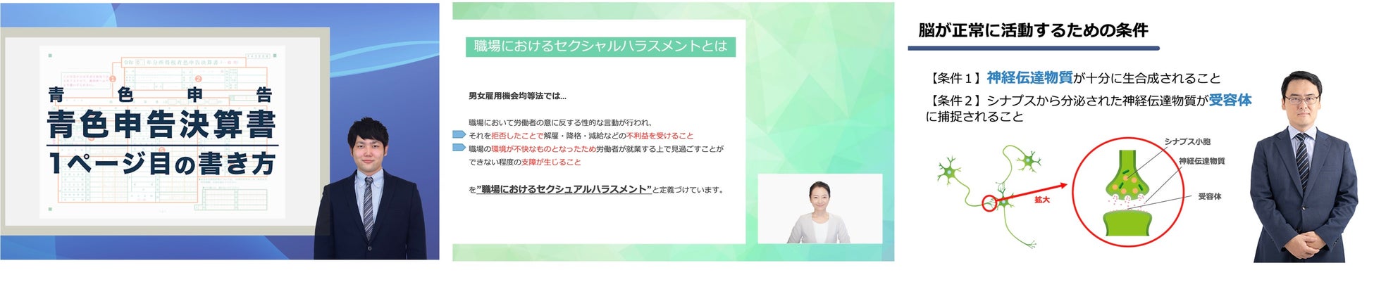 また、テレビ番組のように進行役でアナウンサーが出演する動画を安価で制作できるプランもご用意。進行役でアナウンサーが入るだけで、単調になりがちなセミナー動画にメリハリが生まれ魅力的なコンテンツになります。