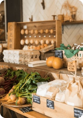 地元農家さんが育てた新鮮な野菜や果物、加工品などを直接販売しています。