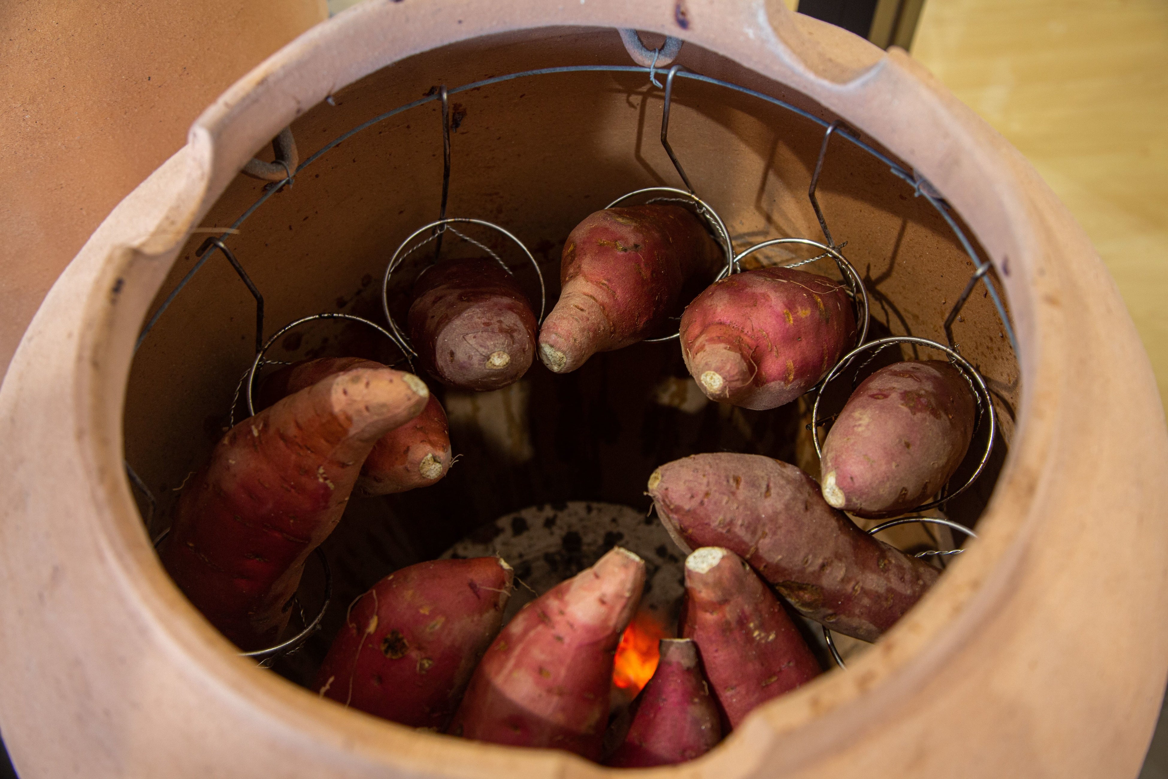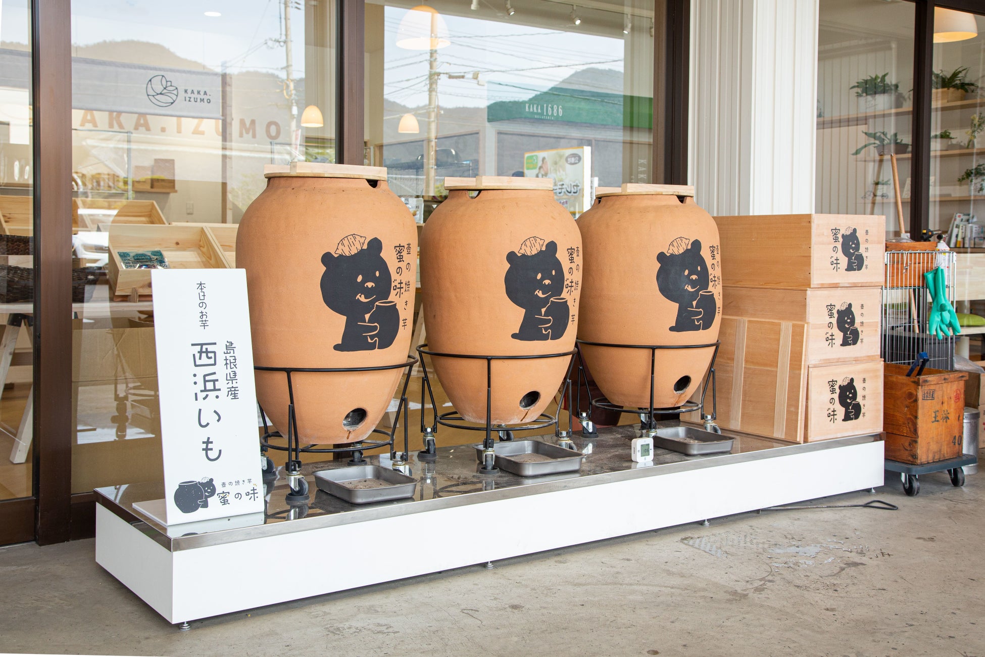 焼き芋職人が特注の壺で炭を使ってじっくりと焼き上げています。地元島根で育てられた「西浜いも」は優しい甘さが広がります。「焼き芋ブリュレ」など壺焼き芋を使った様々なスイーツも展開しています。