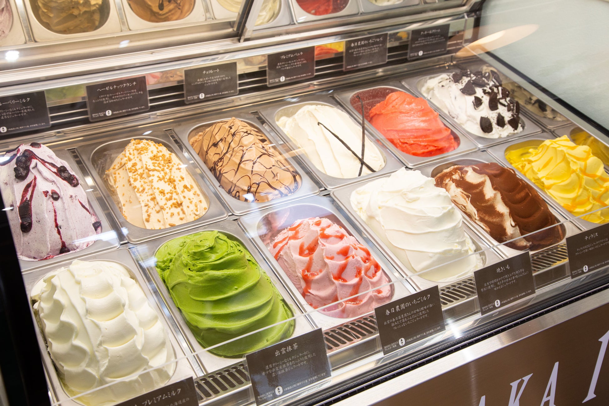 搾りたてのプレミアムジャージー牛乳と北海道産高級生クリームを独自のブレンドで配合したオリジナルジェラートです。出雲抹茶や毎日農園から直接届けられるイチゴなど地元素材を活かした多彩なフレーバーをご用意しております。