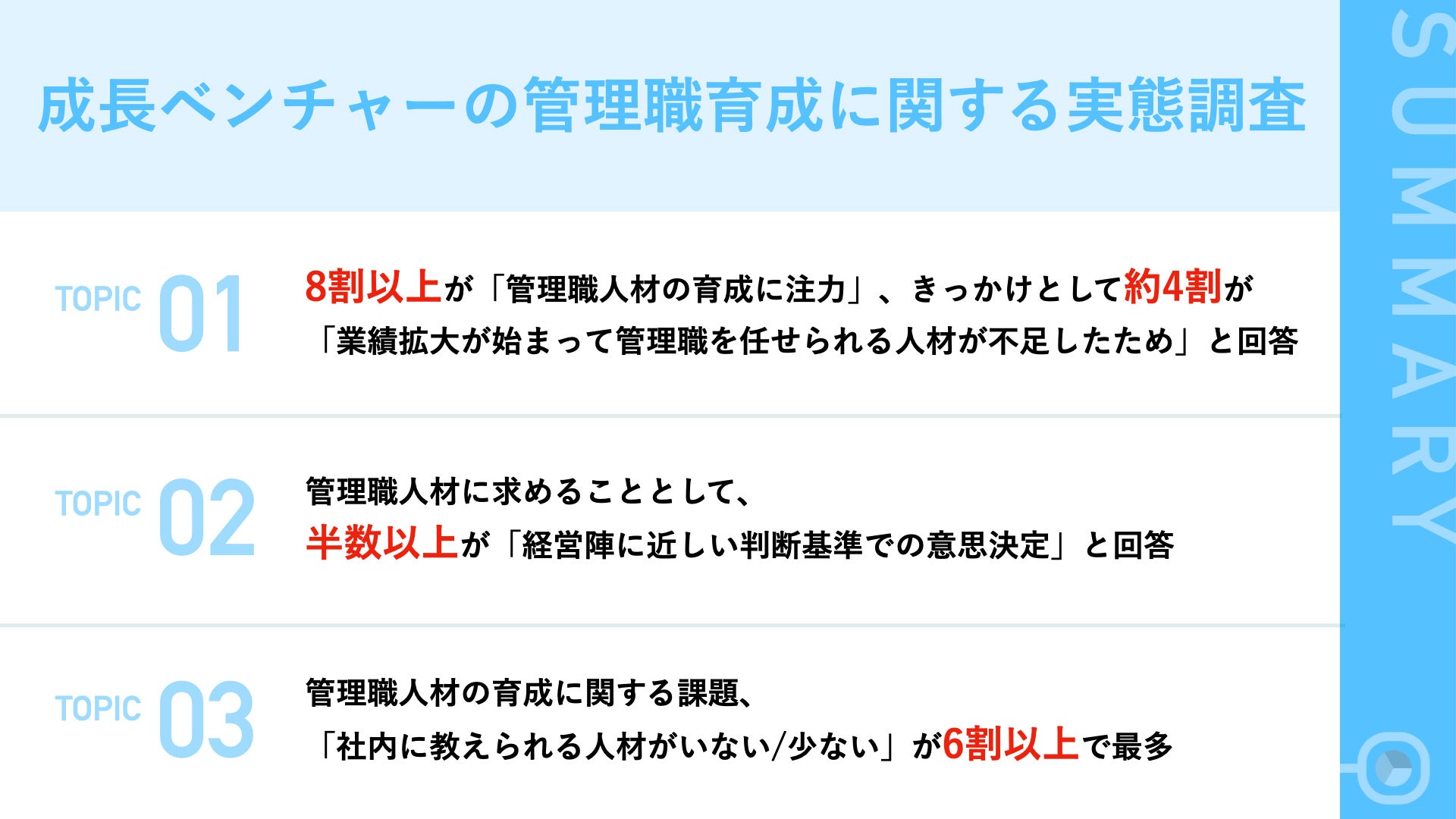 - 8割以上のベンチャー企業が「管理職人材の育成に注力」