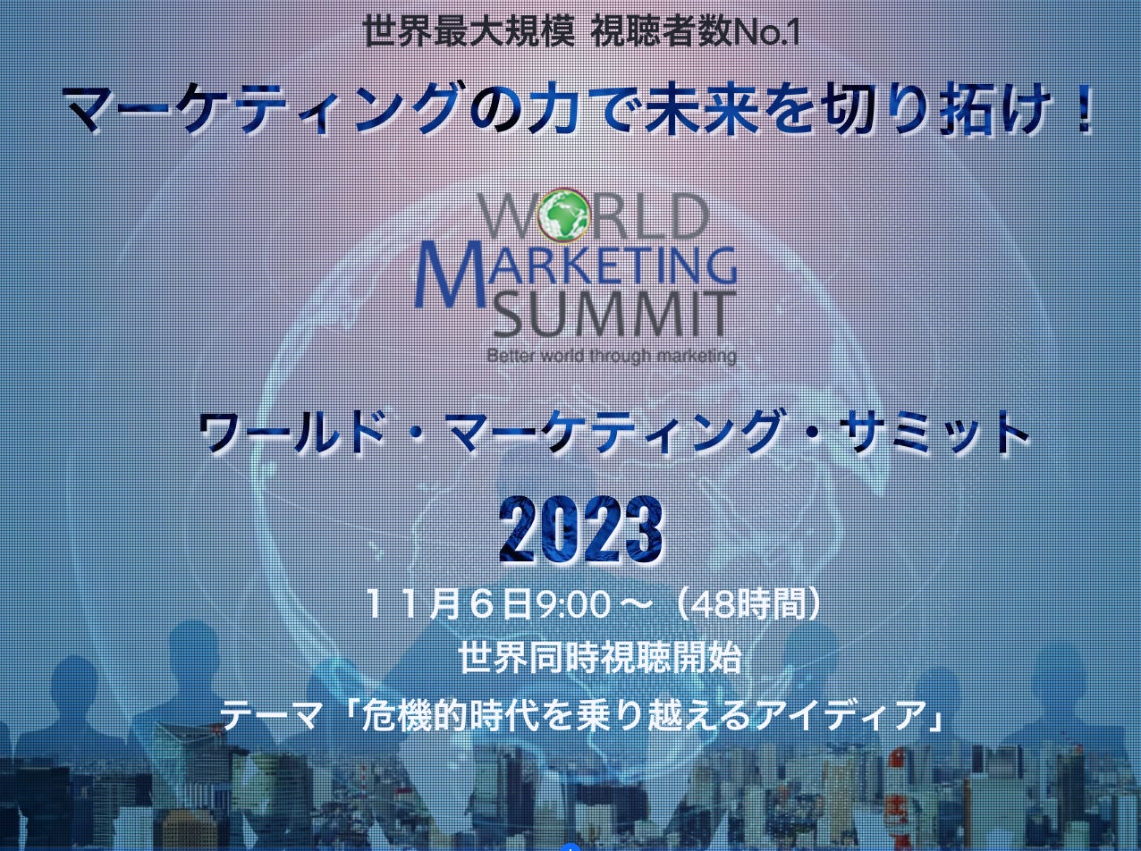 視聴予約受付開始!世界最大規模のマーケティング・ワールド・サミット2023 11月6日世界同時配信 各国の市場を引率するリーダー200人+がオンライン上で講演