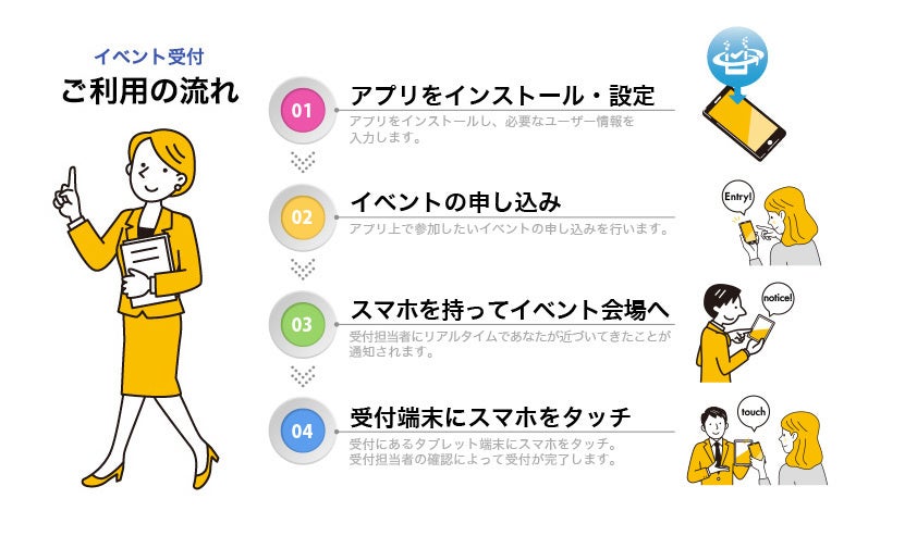 スマートフォンを受付端末にタッチするだけで瞬時に完了する新しい受付体験を提供