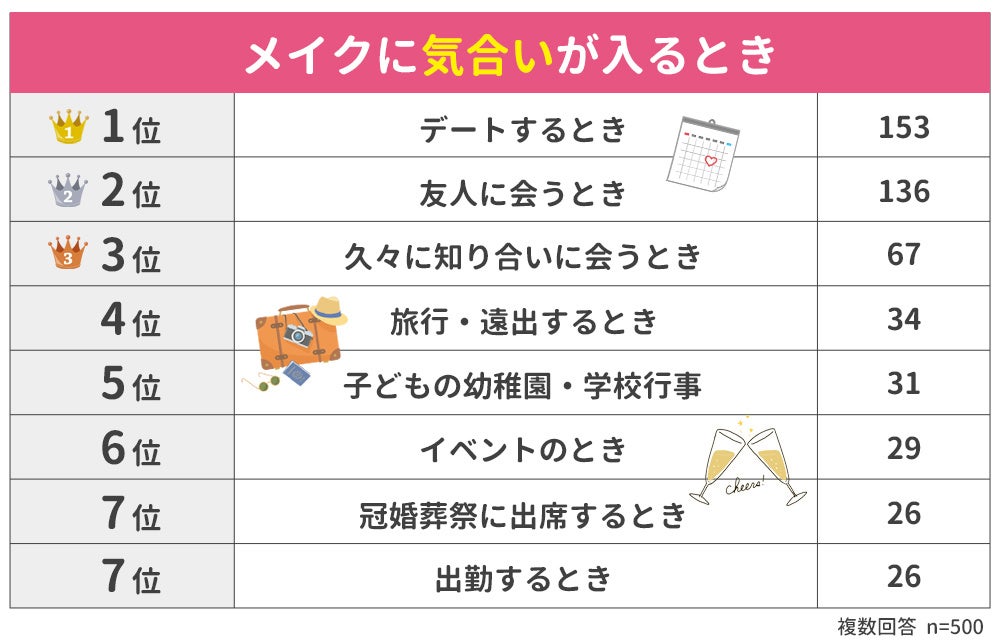 【メイクに気合いが入るのはいつ?】女性500人アンケート調査