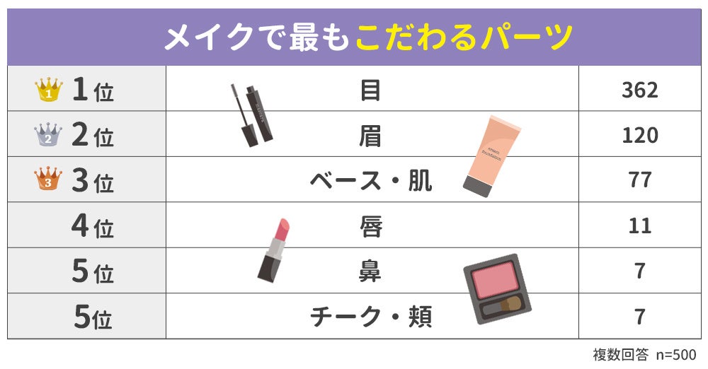 2位「眉(120人)」、3位「ベース・肌(77人)」と続きます。