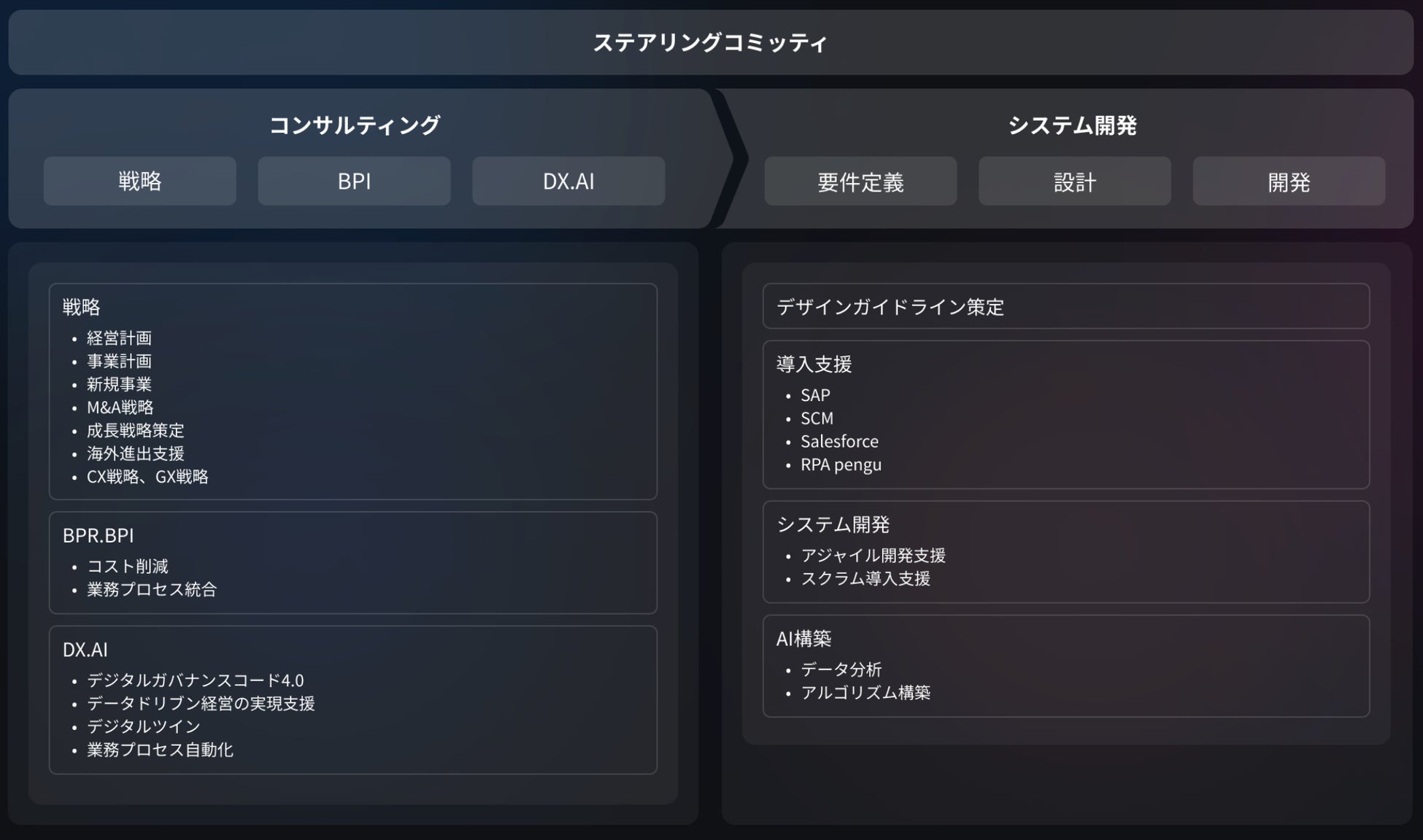 私たちは、現代の企業に求められる“構想力と現場主義の両立”を実現する、新たなコンサルティングファームのかたちを創造していきます。