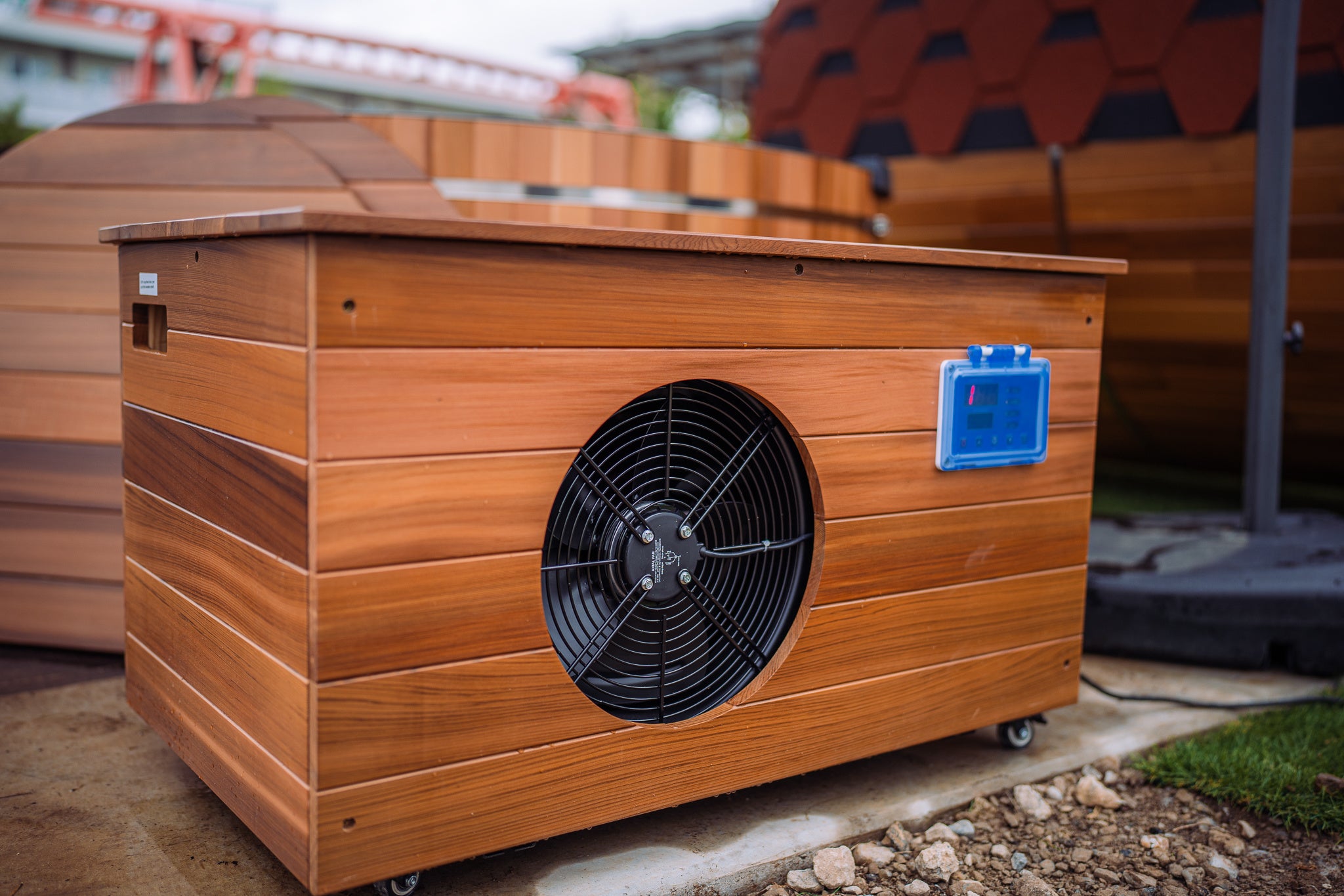 一般的な木製サウナの雰囲気とマッチするようにバスタブ・チラー共にフレームにはレッドシダーを採用。