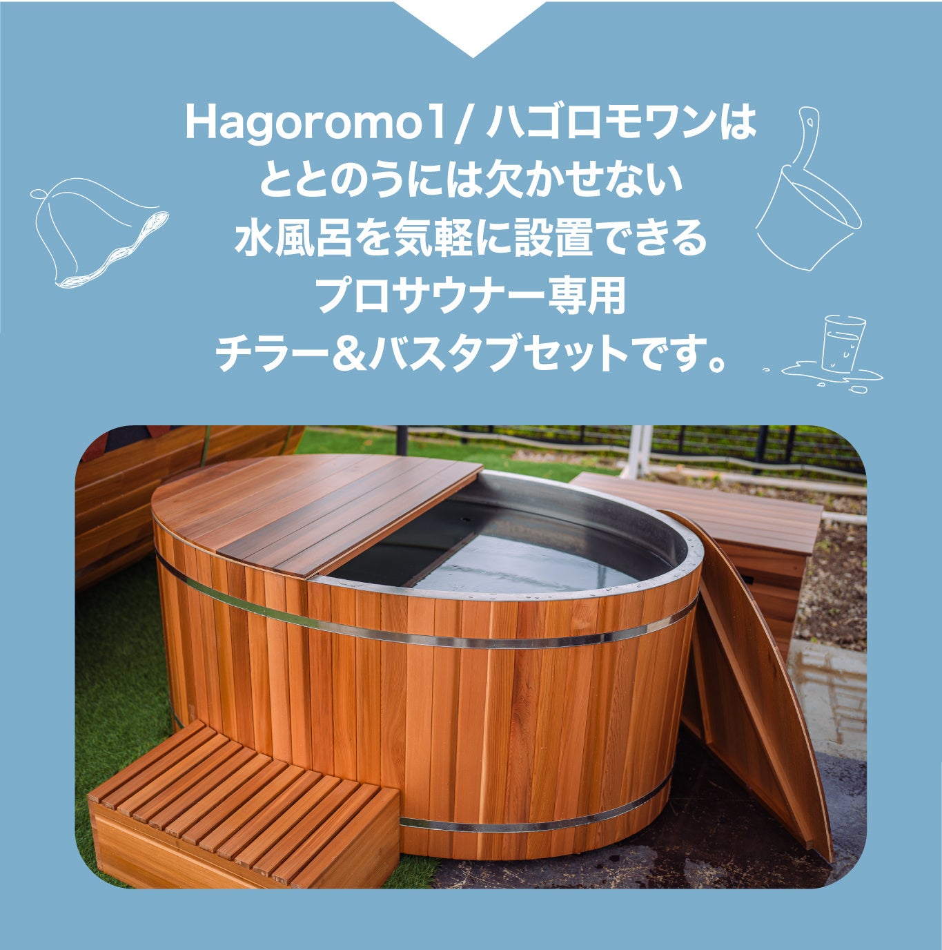『Hagoromo1(ハゴロモワン)』はととのうには欠かせない水風呂を気軽に設置できるプロサウナー専用チラー&バスタブセットです!