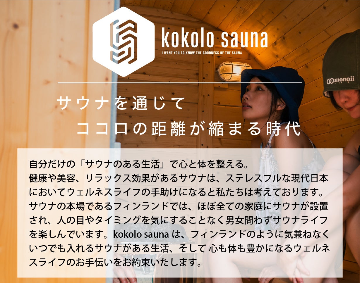kokolo saunaは2023年に新たに誕生したサウナブランドです。サウナをもっと身近に楽しんでもらいたいという想いのもと、品質にこだわったプライベート用バレルサウナやチラーバスを販売しています。