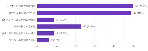 調査の結果、「ライナーの持続性や耐水性」「筆やペン型の使いやすさ」を重視する方が多いことがわかりました。