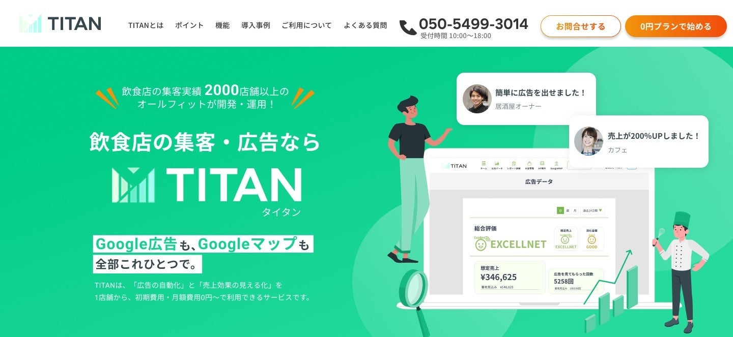 TITANは、飲食店に特化したWeb集客オールインワンツールです。