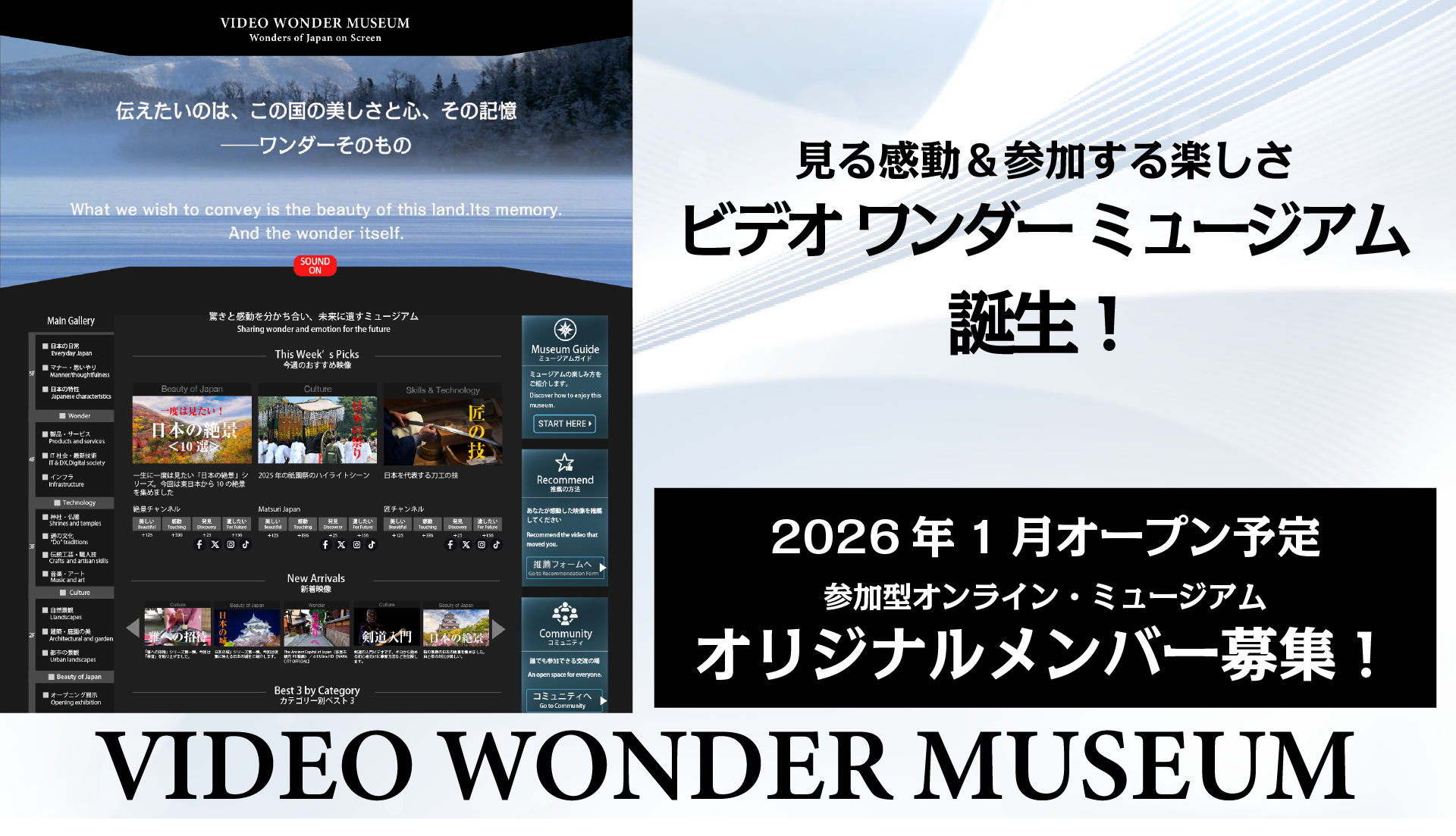 ビデオワンダーミュージアムは、映像を楽しみながら文化参加できる、新しいかたちのSNSとして誕生します。