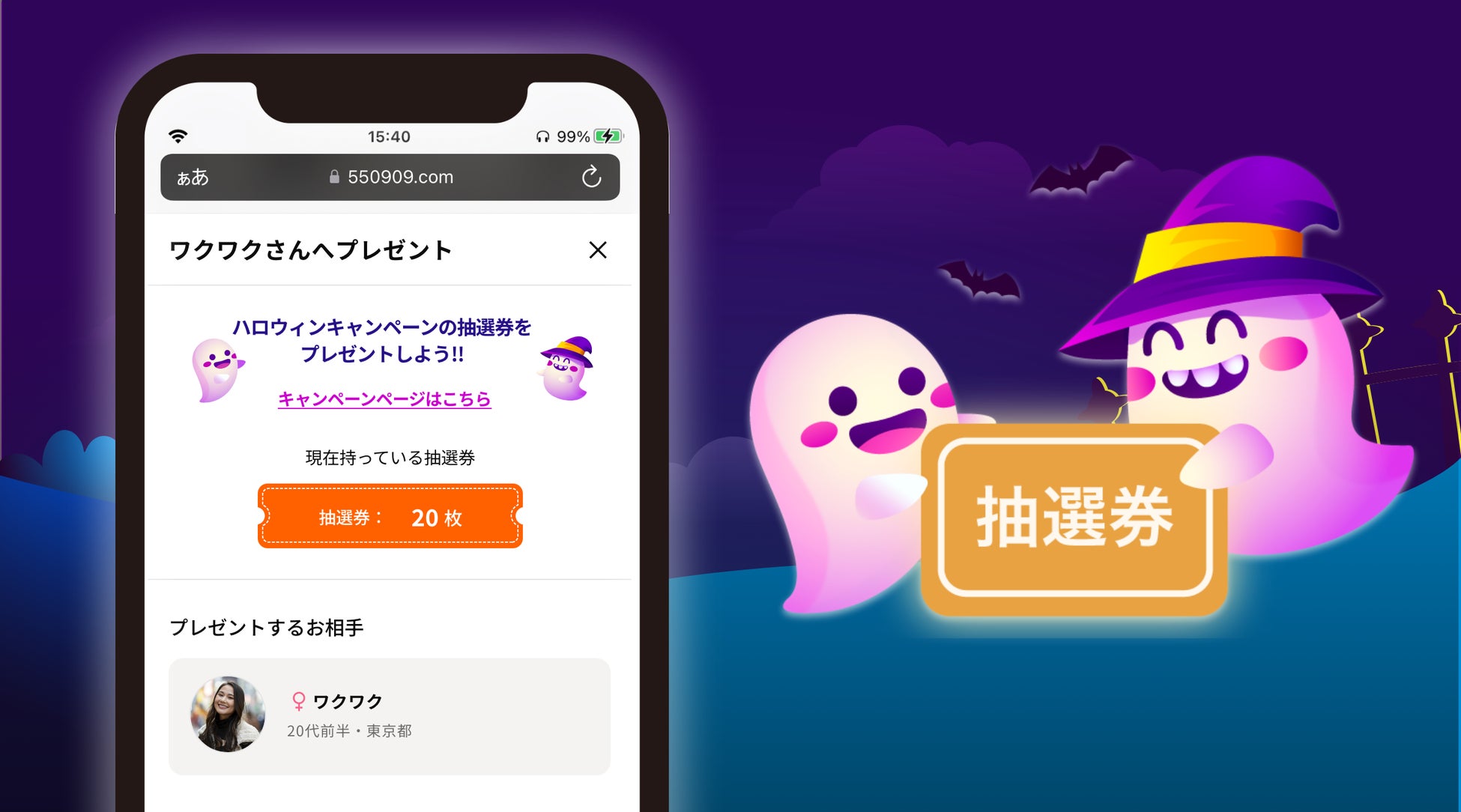 〜累計会員1200万人突破のマッチングサービス&アプリ「ワクワクメール」で総額500万円の豪華賞品が抽選で当たるハロウィンキャンペーンが開催中〜