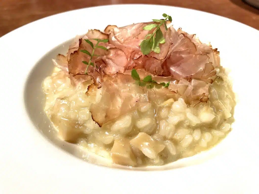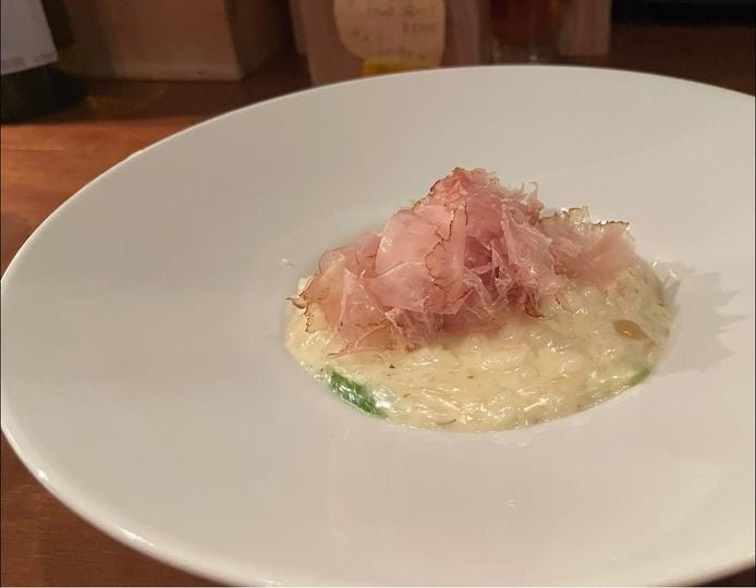 その後、一ヶ月間の氷温熟成と更なる燻製時間の延長、さらに3ヶ月以上の熟成によって「ベーコン節®︎」は完成しました。その過程で、原料10kgからわずか2.5kgの出来上がり量という、非効率的な製造過程を経験しましたが、試食の瞬間、その努力が報われました。「これは本当に美味しい」と全員が口を揃えました。「かつお節」と違って、そのまま口に含んでも味が抜けず、トリュフ代わりにサラダ、パスタ、卵かけご飯、リゾットなどにトッピングと、様々な料理にマッチすることを発見し、我々は「これこそが未来の食品」と確信しました。一部、事前に協力してくださった飲食店でも、実際、洋食・和食文化のどちらでも合う食材で、本当に美味しいと評価してくださっています。