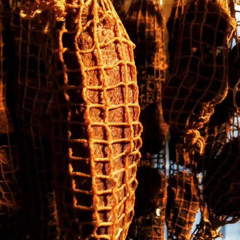 この革新的な「ベーコン節®︎」は、北海道産の豚肉を数週間氷温熟成させた後、オーク材で数日間燻煙し、さらに4ヶ月以上熟成させるという特別な工程を経て生まれます。その産出量は、4kgの原材料からわずか1kgに満たないものとなります。この製造過程により、脂肪の少ない部分に熟成された旨みが凝縮され、一般的なベーコンとは一線を画した風味を提供いたします。(※弊社製造のベーコンは、食のミシュランと呼ばれる国際味覚審査賞で国内で唯一三つ星を連続受賞しております)