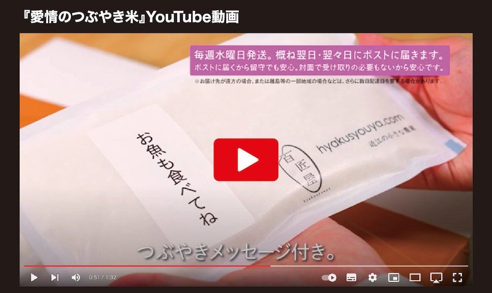 滋賀県長浜市で農業を営む百匠屋〈ひゃくしょうや〉(所在地:滋賀県長浜市 管理者/清水 大輔)は、離れて暮らす親子のコミュニケーションを応援するお米の仕送りシステムを開始いたしました。