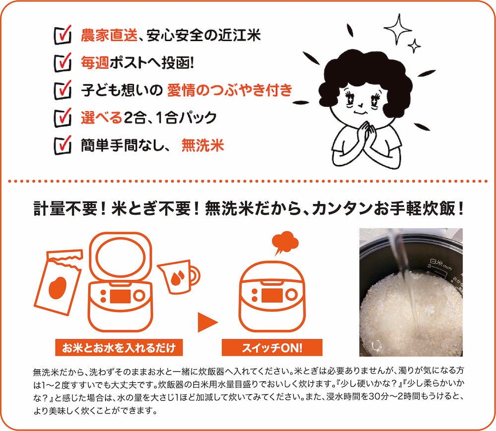 親の愛情メッセージとともに、安心のおいしいお米が毎週届けられます。農家直送! 仕送りの新しいスタイル、お米のサブスクサービスが大好評です!
