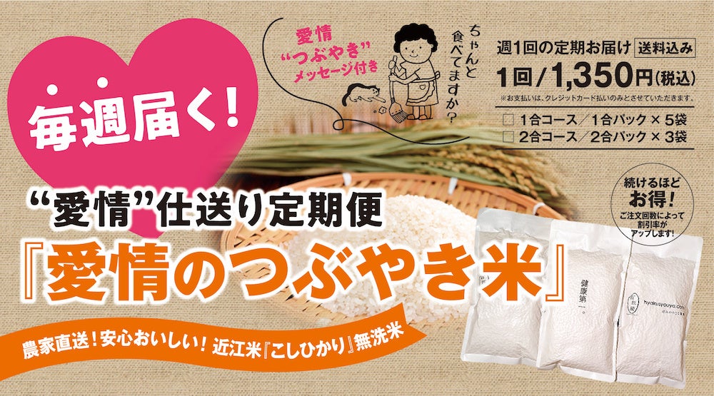 愛情のつぶやきメッセージ付きお米の仕送り定期便 『愛情のつぶやき米』。