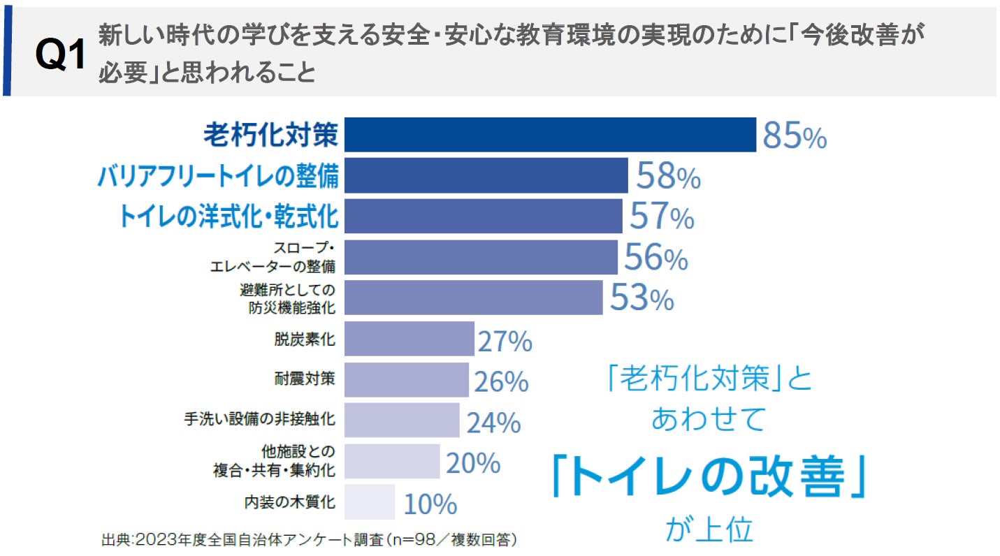 「学校のトイレに関する自治体アンケート」結果公表 「新しい時代の学びを支えるために『トイレの改善』が必要」が上位