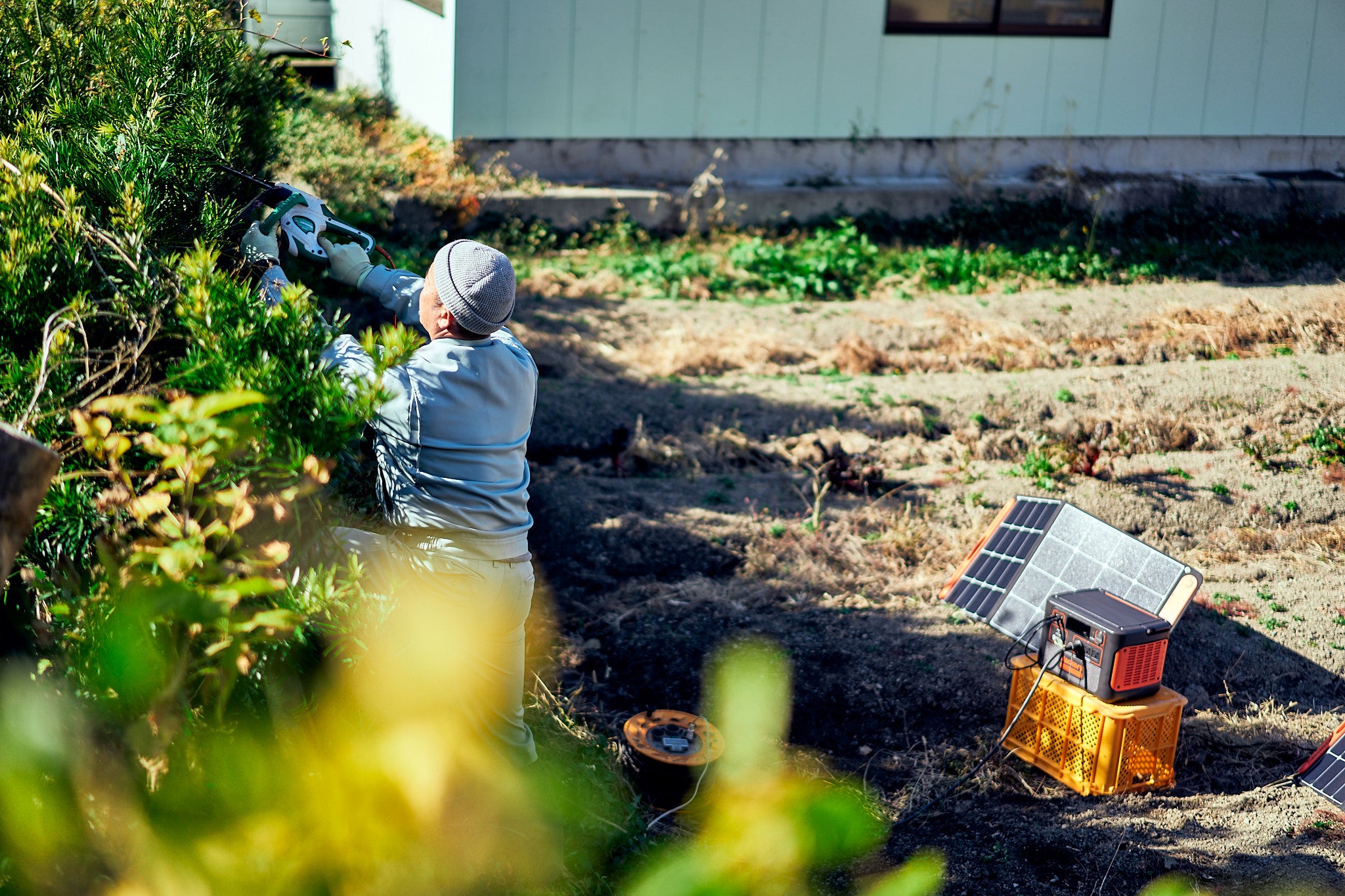 は、持ち運び可能で大出力のポータブル電源(Jackeryポータブル電源ソーラーパネル セット 1500)を福田果樹
