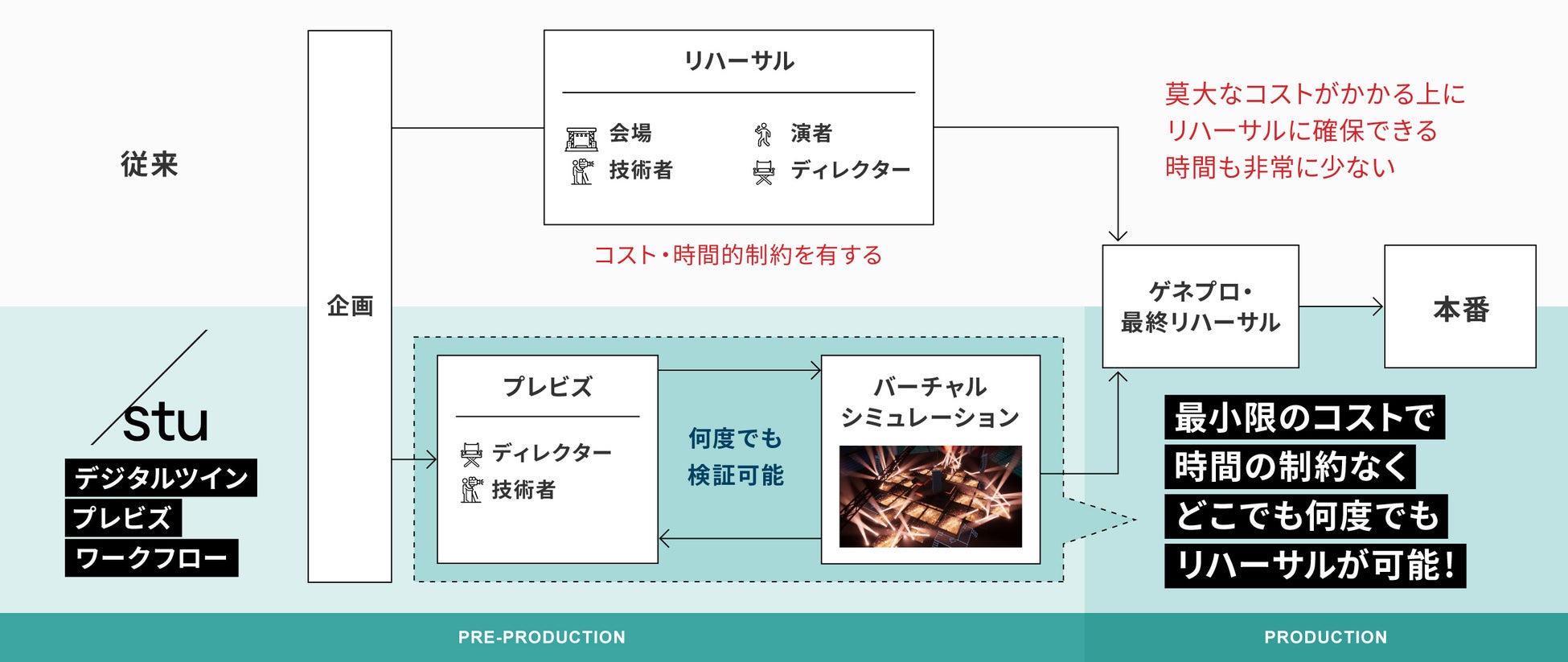 「コンテンツ業界のDXに資するシステムの開発・実証を行う事業の支援」の対象事業の1つに、stuの「ライブ制作におけるデジタルツインプレビズワークフローの導入」プロジェクトが採択