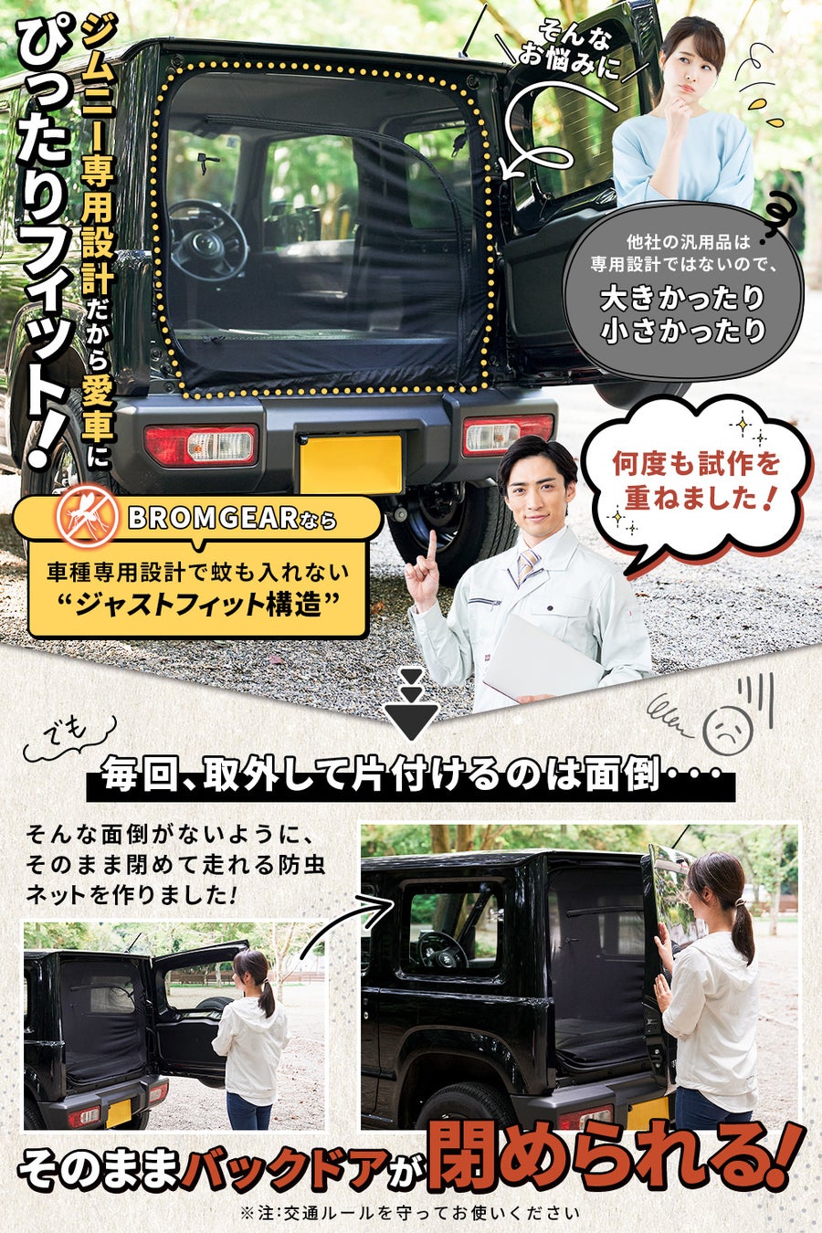 Fumat株式会社(茨城県結城市)は、スズキのジムニー専用バックドア防虫ネット(希望小売価格3,980円)を発売しました。自社ショップにて発売中です。