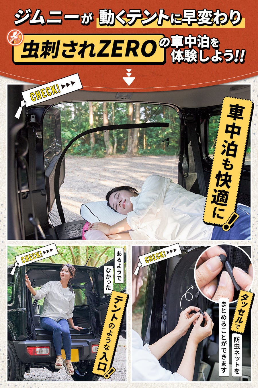 ジムニーをテントに!ジムニー専用設計の防虫ネットを新発売