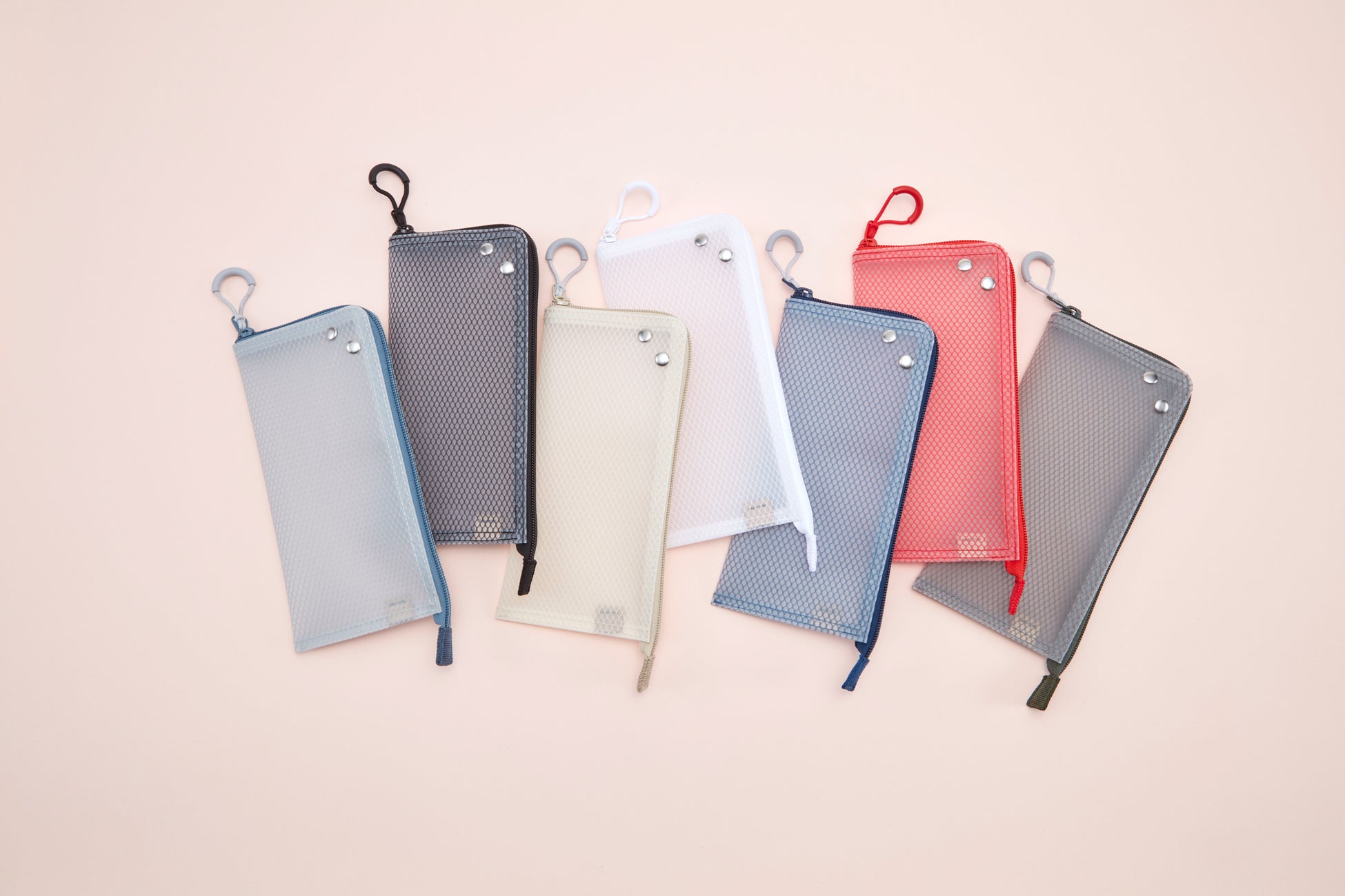 程よく中身が見える透け感、ジッパータブ付で開けやすく、選べる7色のラインナップ。