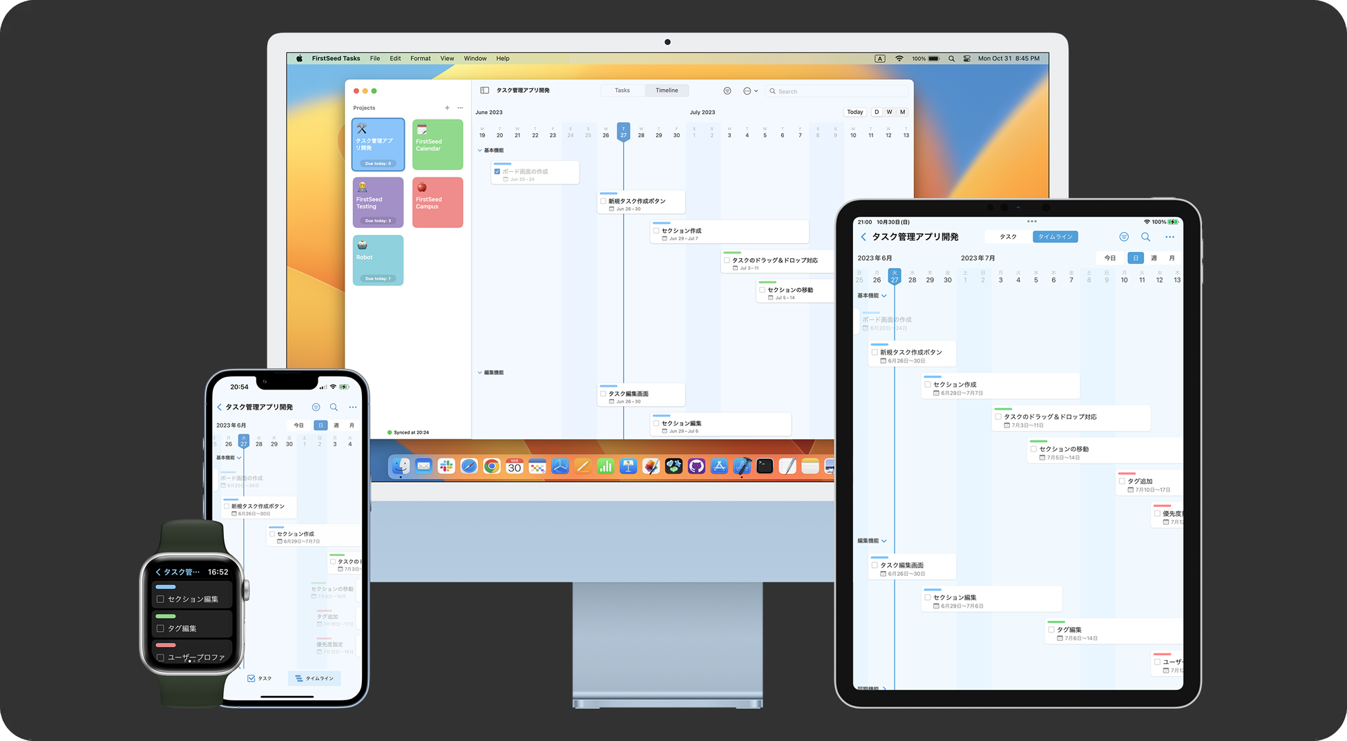 FirstSeed TasksはiPhone, iPad, Mac, Apple Watchに対応しており、App Storeから無料でダウンロードできます。